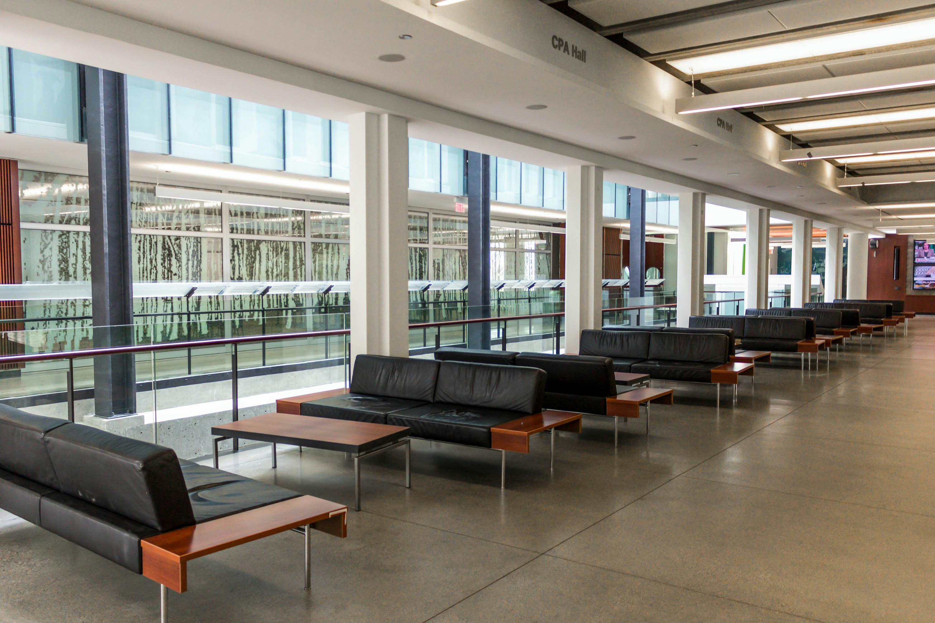 A lively study spot on the first floor of Henry Angus, connected to the Bruce R. Birmingham Undergraduate Centre and Sauder Exchange Café Lounge.